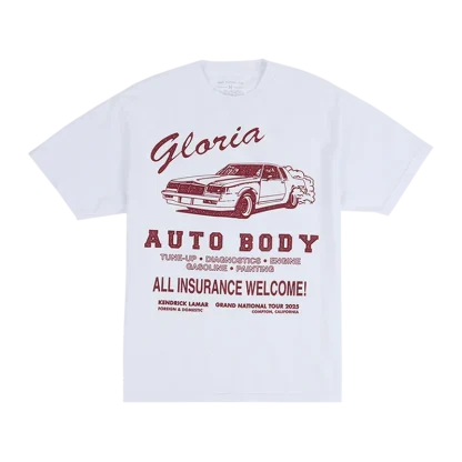 The Kendrick Lamar Gloria Auto Body T Shirt features a garage inspired graphic that nods to industrial grit and artistic edge. Made from soft, breathable cotton with a classic fit, it blends raw style with everyday comfort, perfect for fans who want a bold, low key statement piece.